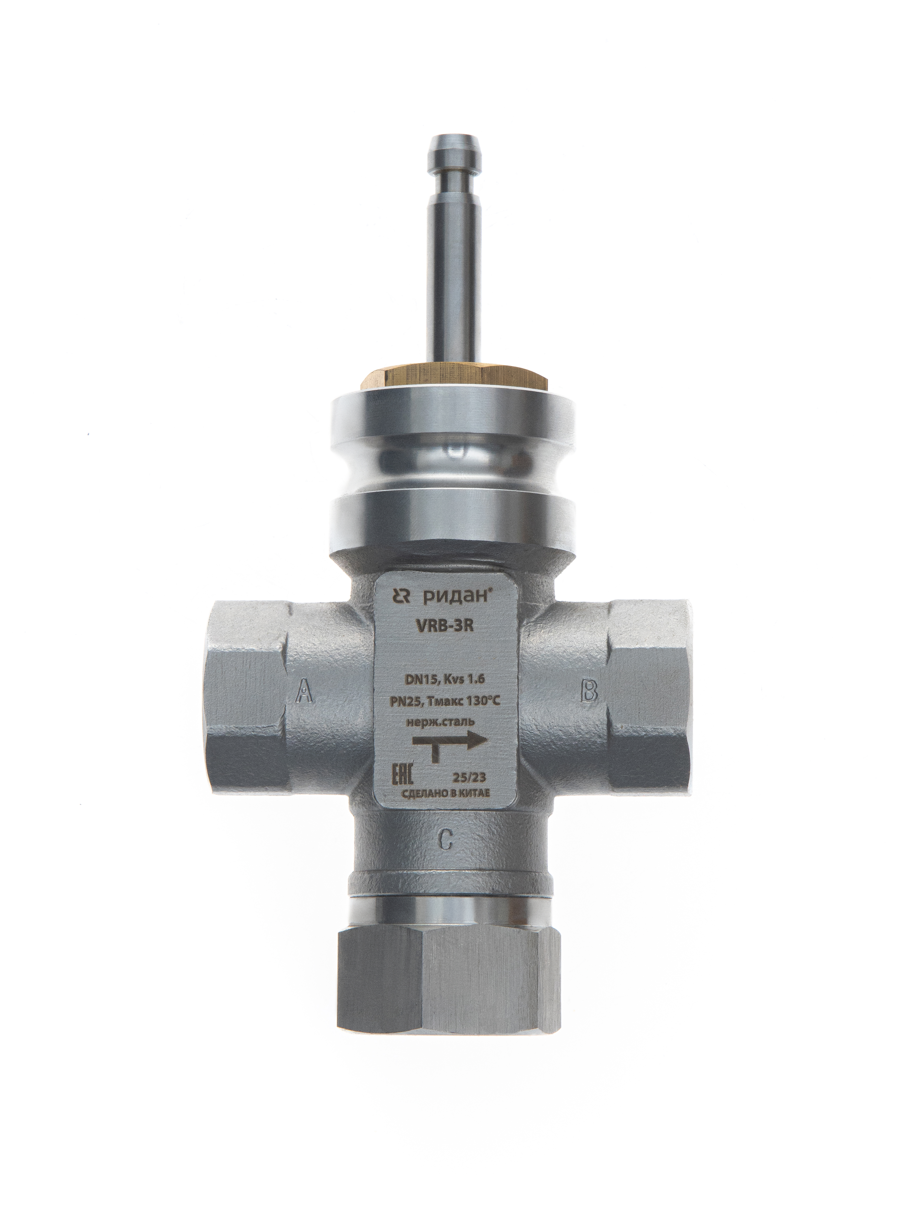 Ридан 065Z0216R — Клапан регулирующий VRB-3R PN25, DN20, KVS 6,3 м³/ч, трехходовой, седельный, внутренняя резьба, нержавеющая сталь