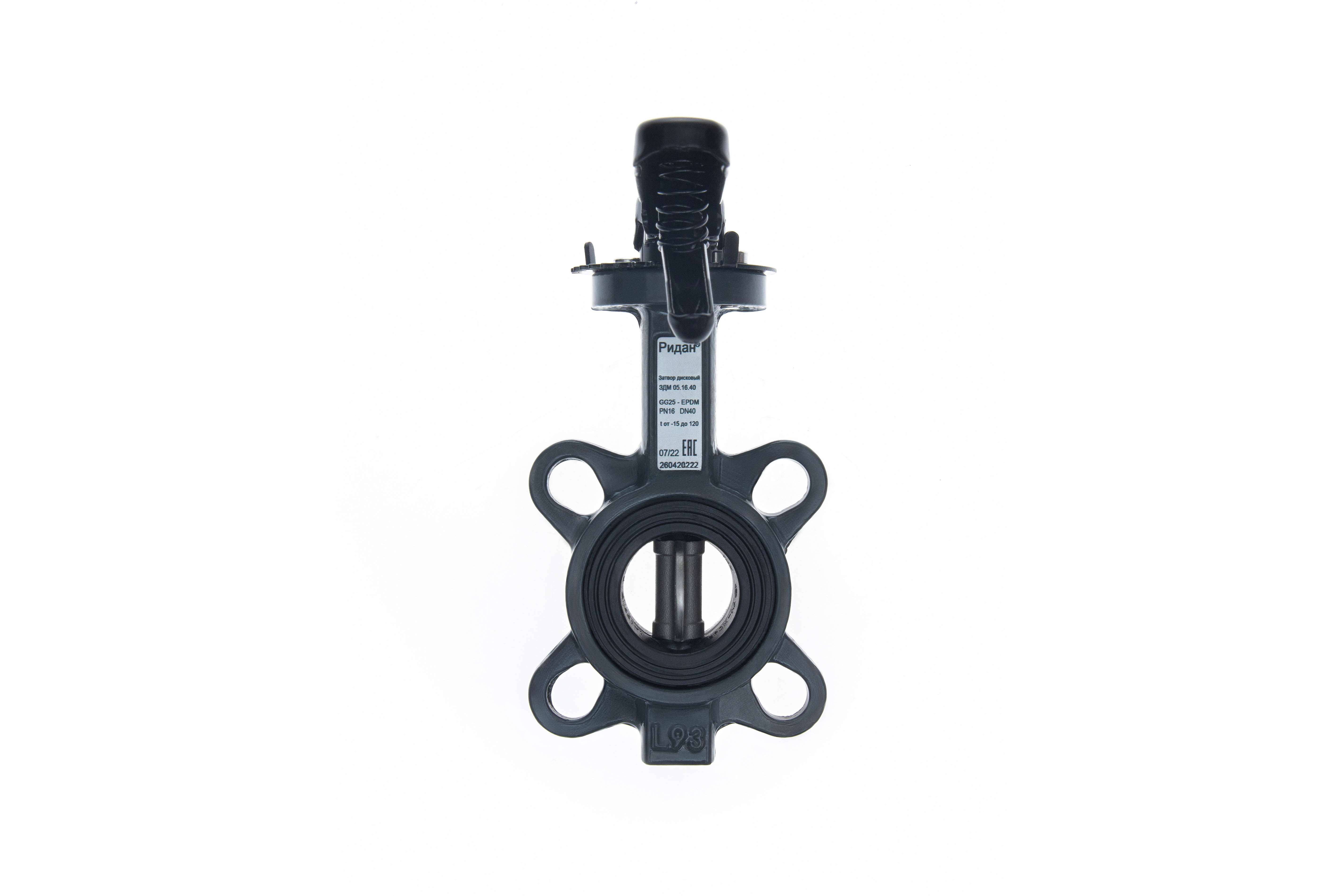 Ридан 082X4426R — Затвор дисковый поворотный ЗДМ 05.16.150, PN16, DN150, корпус GG25, диск — нержавеющая сталь AISI316, уплотнение EPDM