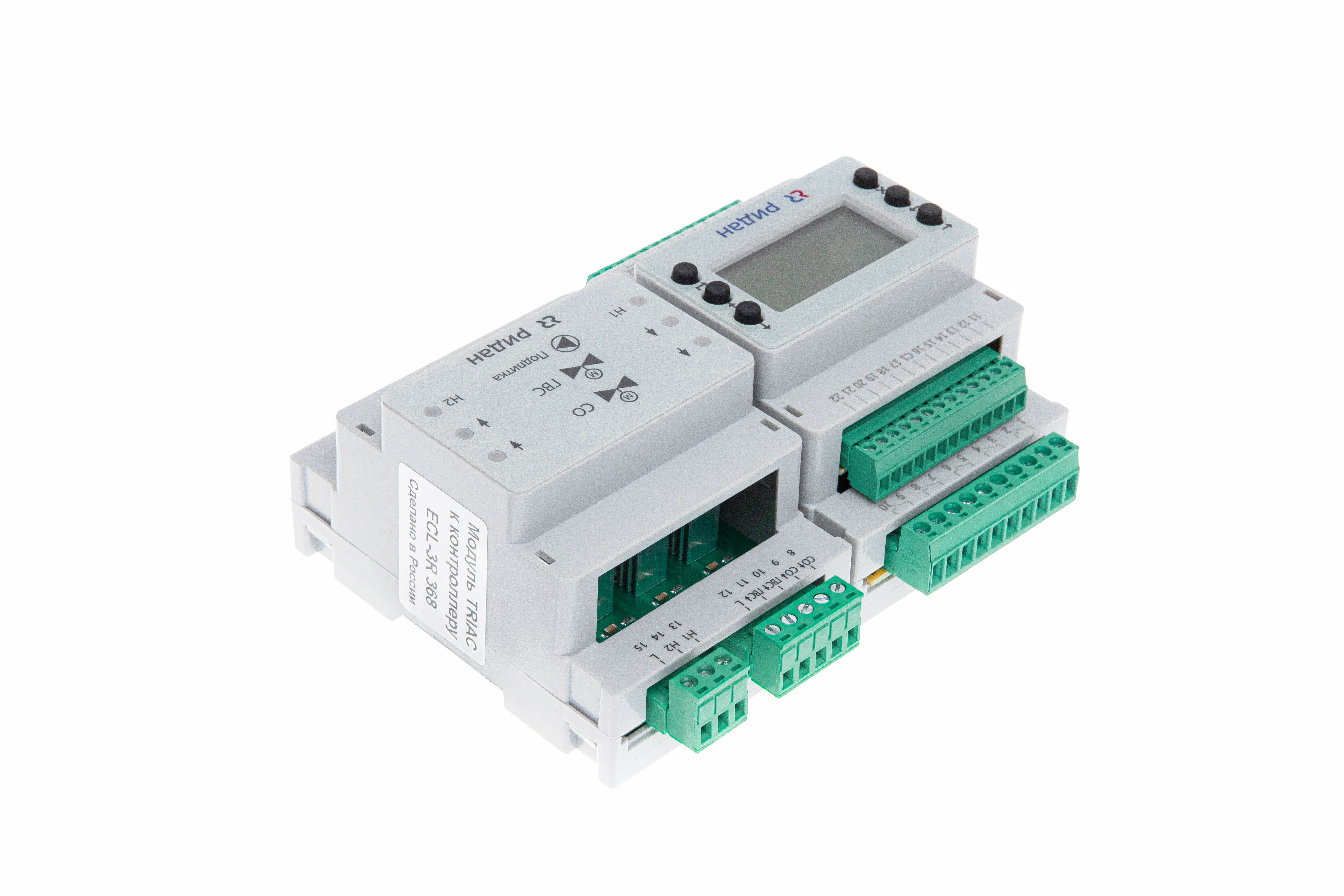 В комплект поставки ECL-3R 368 входит модуль расширения с твердотельными реле ECL-3R Triac, подключаемый к транзисторным выходам контроллера через прилагаемый кабель.