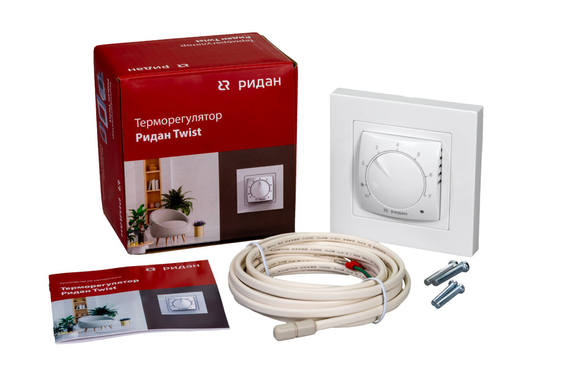 Ridan 21RT1060R — Розничный комплект для теплого пола: нагревательный мат Ridan TF-200 0,5 м² с терморегулятором Ridan Twist (белый)