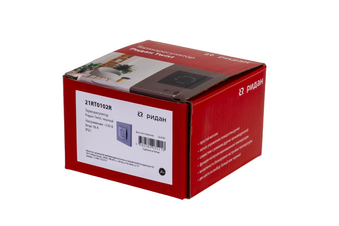Ridan 21RT1081R — Розничный комплект для теплого пола: нагревательный мат Ridan TF-200 4 м² с терморегулятором Ridan Twist (черный)